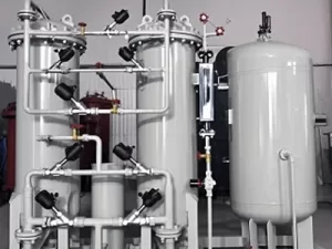 2. This air is compressed into the 1st molecular sieve bed and all the Nitrogen is adsorbed. The molecular sieve beds are porous & thus have large surface area due to which they adsorb large amount of Nitrogen.